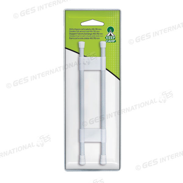 Asta telescopica doppia in metallo rivestito, progettata per mantenere in sicurezza gli oggetti nei pensili.Confezione in blister