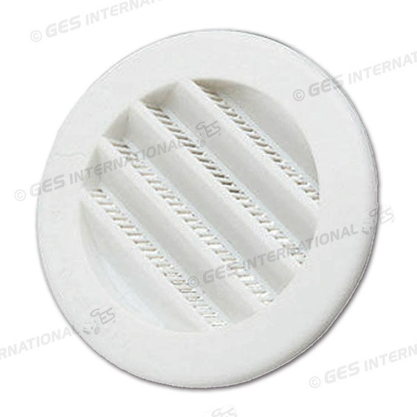 Griglia in plastica per la ventilazione, da incasso, diametro di Ø 60 mm. Area di ventilazione di 20 cm².Comprensiva di zanzariera bianca.Colore grigio chiaro (RAL9003).