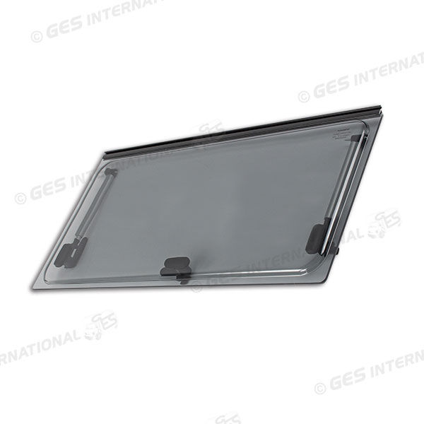 Lastra di ricambio per le finestre Seitz S5.Dimensioni del foro scocca di 900 x 500 mm.Colore dark grey, cerniera nera.