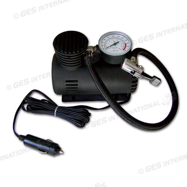 Mini compressore eco a 12 V comprendente 3 diversi raccordi. Ideale per pneumatici, palloni, materassi gonfiabili ecc. Potenza 250 psi, 18 bar.