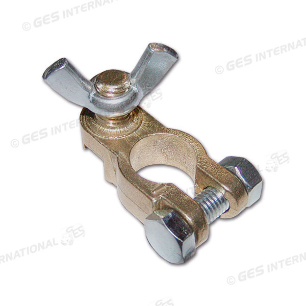 Morsetto a farfalla per polo negativo batteria, attacco per capicorda con foro da 8 mm.