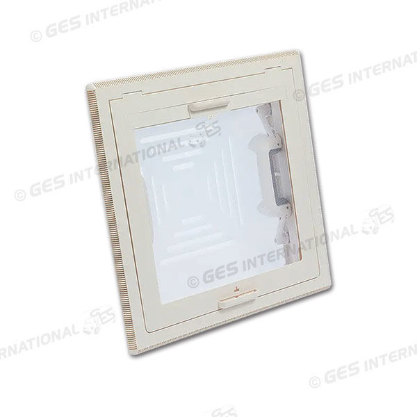 Zanzariera/oscurante MPK per oblò piccolo modello 40, dimensioni 400 x 400 mm.In acrilico resistente di colore beige.Ribaltabile, per proteggere dagli insetti e lasciar entrare la luce e l'aria all'interno del mezzo.