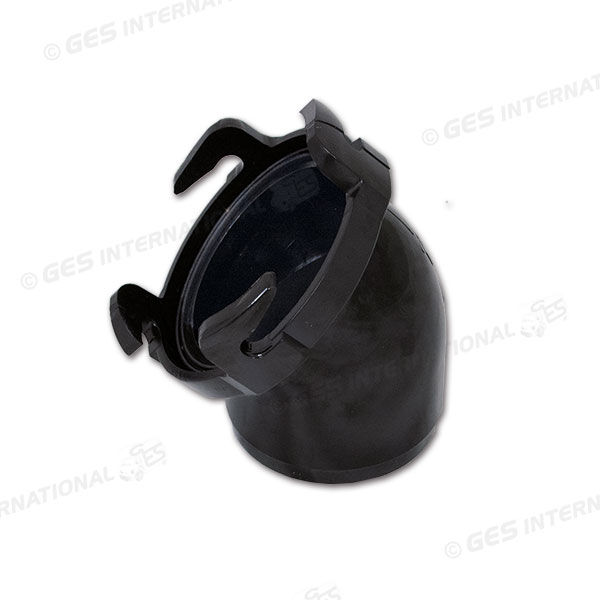 Adattatore curvo 45° Valterra per tubi da 3".l'innesto a baionetta permette un aggancio immediato, la struttura in robusto ABS nero.