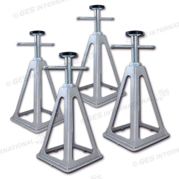 Martinetti Alu Jacks RAPTOR in alluminio con piastra di supporto rotonda coperta da una protezione antiscivolo in plastica morbida.