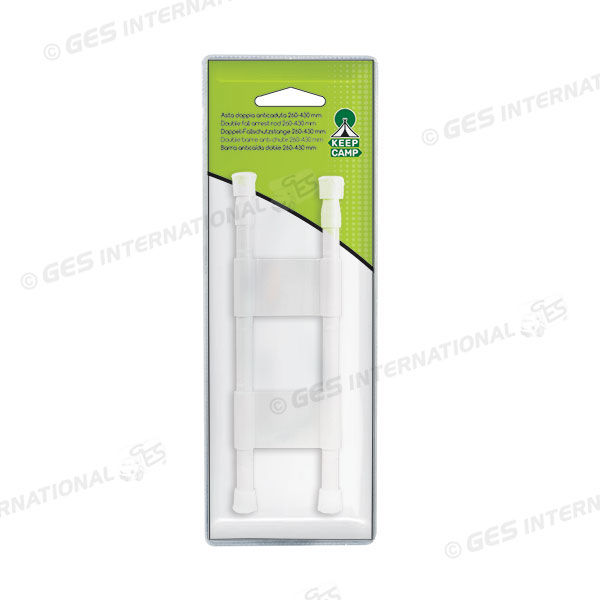 Asta telescopica doppia in metallo rivestito, progettata per mantenere in sicurezza gli oggetti nei pensili.Confezione in blister