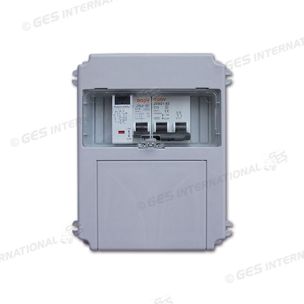 Centralina elettrica con box di sicurezza con differenziale ed interruttore magneto-termico, con protezione sovra-tensioni, montaggio a giorno.Disgiuntore salvavita 230 V.