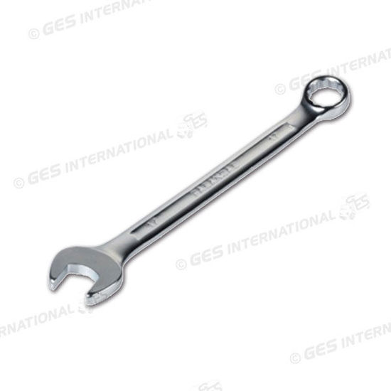 Chiave combinata cromata a forchetta ribassata e poligonale piegata.Dimensioni bocca poligonale di 17 mm.Lunga 202 mm.