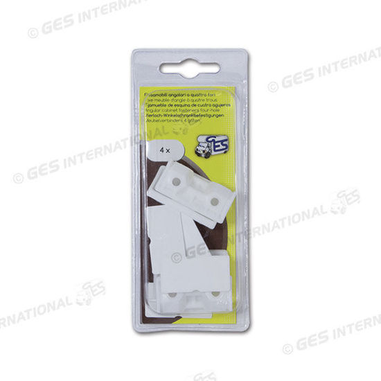 Fissamobili angolare a 4 fori con coperchietto estraibile.