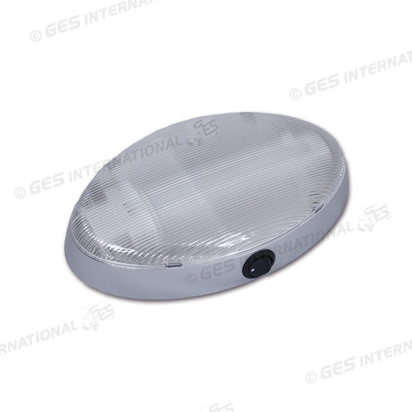 Plafoniera ovale con lampada al neon e cornice color argento.