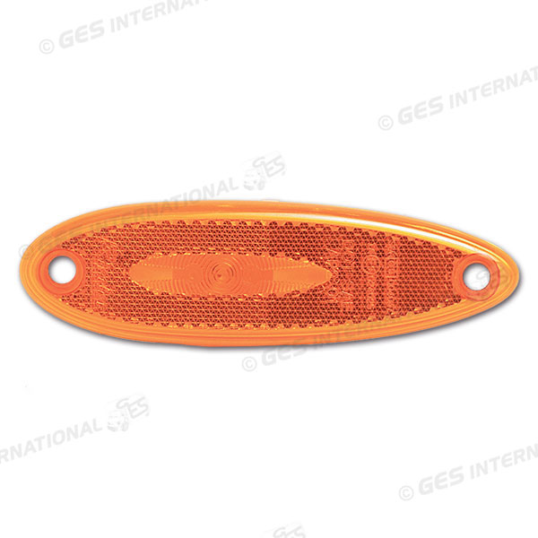 Luce di ingombro laterale arancione a lampadina. Dimensioni 130 x 38 x 9mm. Interasse 105 mm.