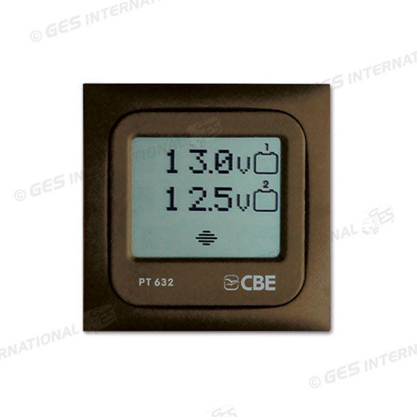 Pannello test digitale touch modello PT632/G per il controllo della tesione di 2 batterie a 12V.Versione da incasso o da parete con distanziale in dotazione; completo di cornice Becker, abbinabile alla serie "Modular Plates" e "Modular Plates Becker".Completi di distanziale e cornice.