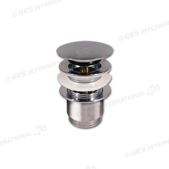 Piletta con tappo integrato ad azionamento push, è sufficiente premere il tappo in ottone cromato per chiudere la piletta o per riaprirla.