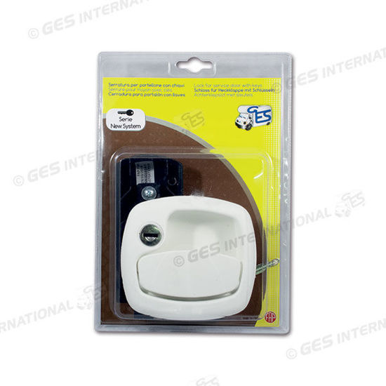 Serratura 1200 FAP completa per portellone.Con chiavi e cilindretto New System.Colore bianco.Confezionato in blister.