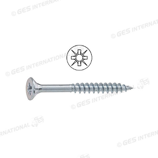 Viti autofilettanti Pozidriv con foro, parzialmente filettate e con testa svasata.